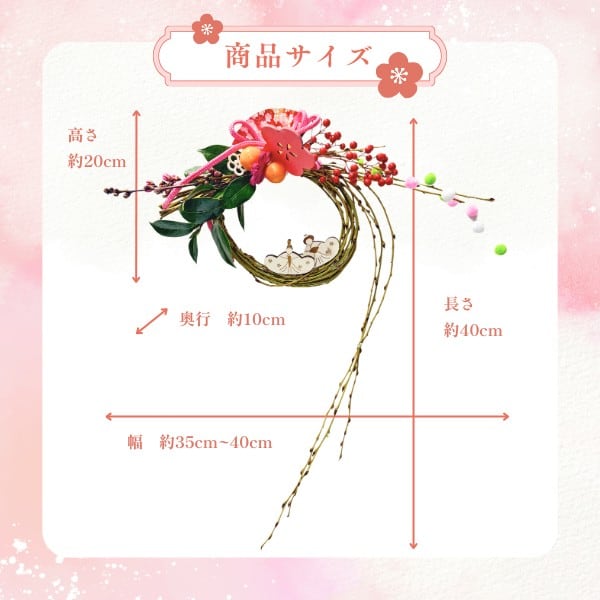 桃の節句をやさしく彩る、和風のおひなさまリースです。