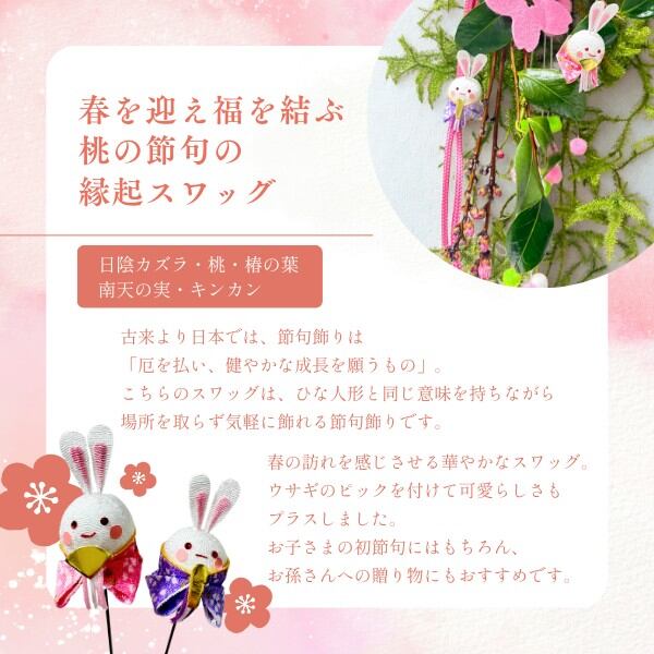 桃の節句 おひなさまスワッグ ひなうさぎ付き ひな祭り飾り 初節句のお祝い 出産祝い 春の和風インテリア