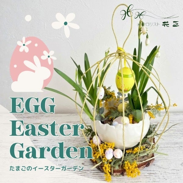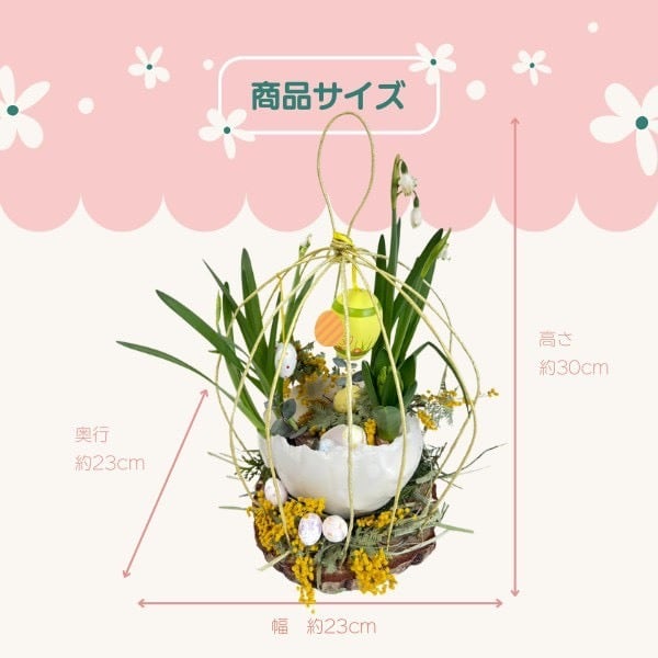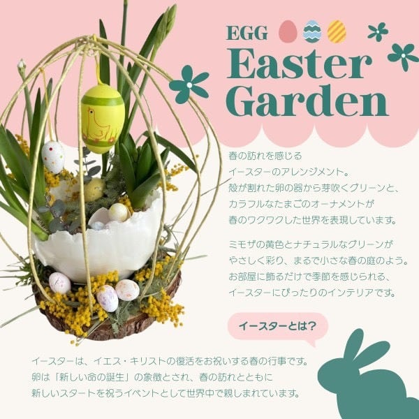 『たまごのイースターガーデン』 イースターアレンジメント ミモザ 春インテリア 卵オブジェ ナチュラルギフト