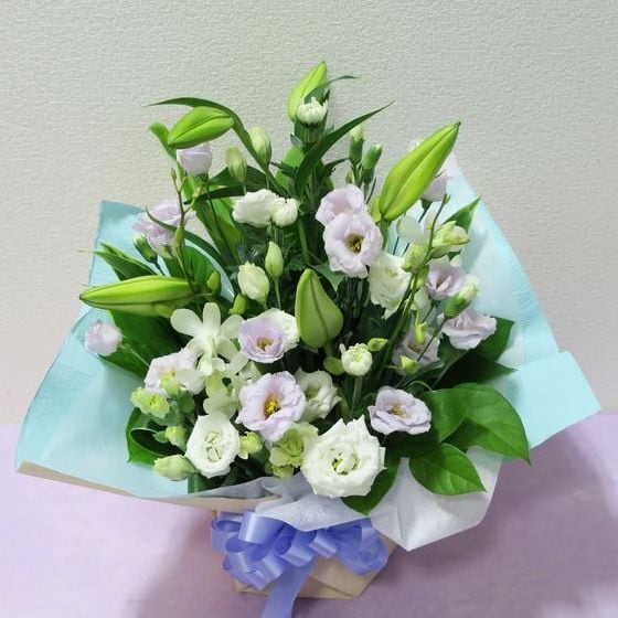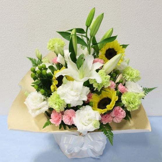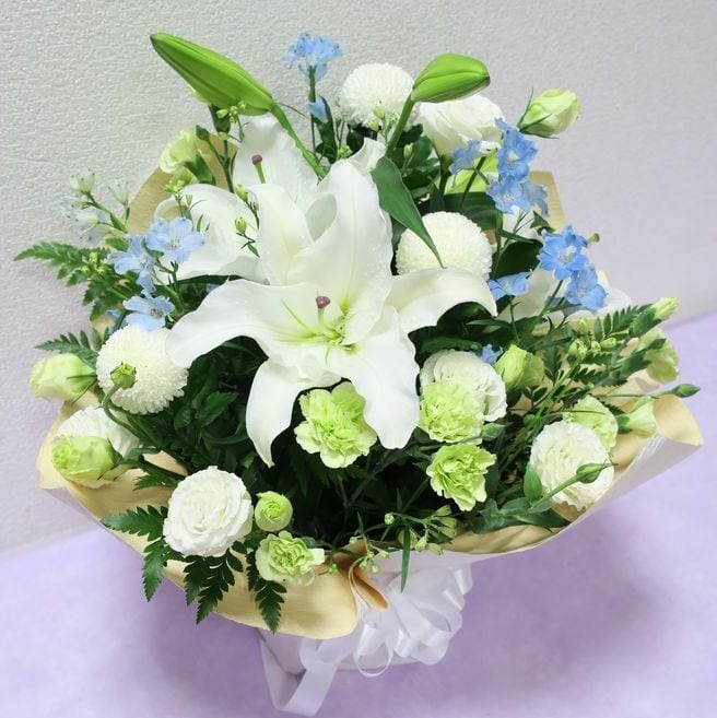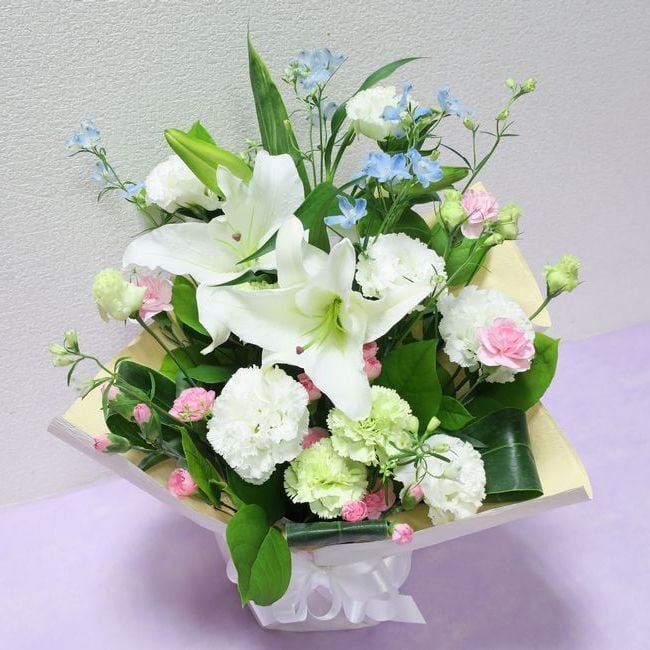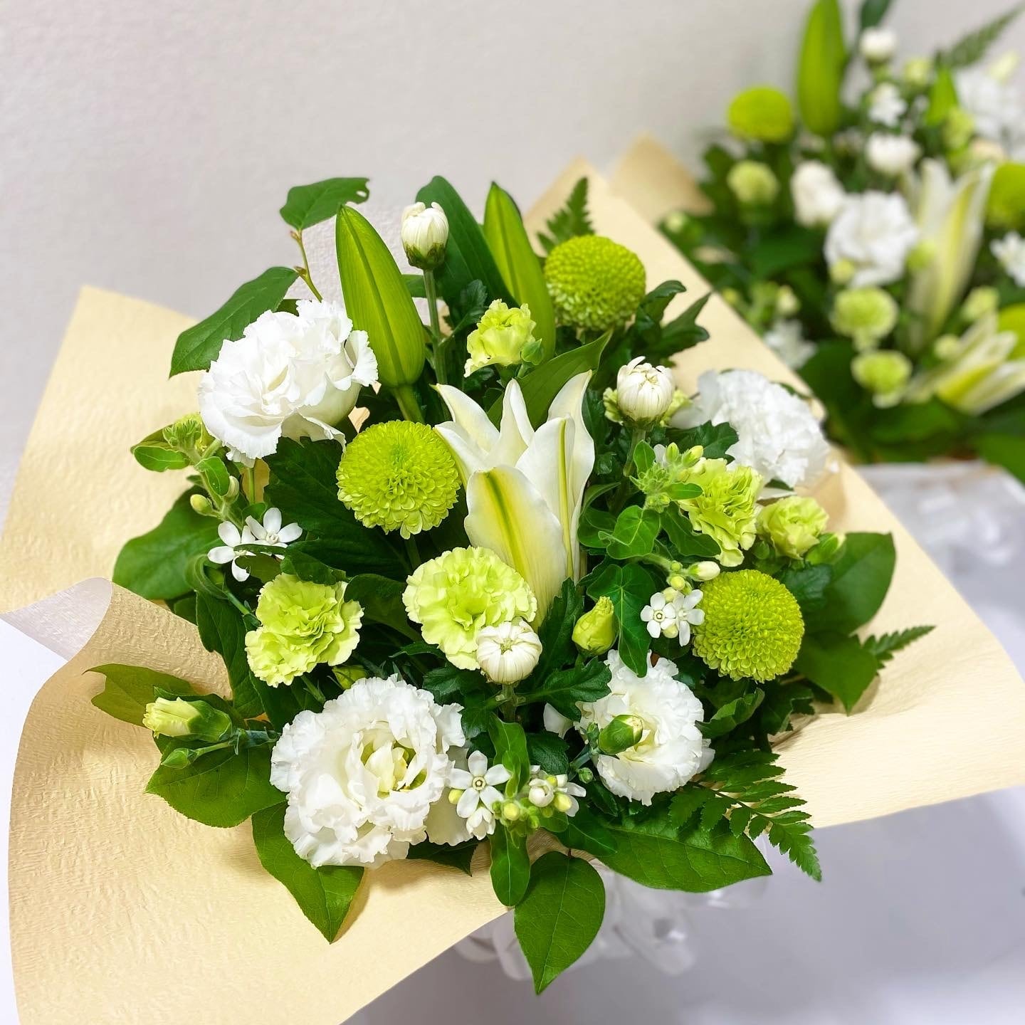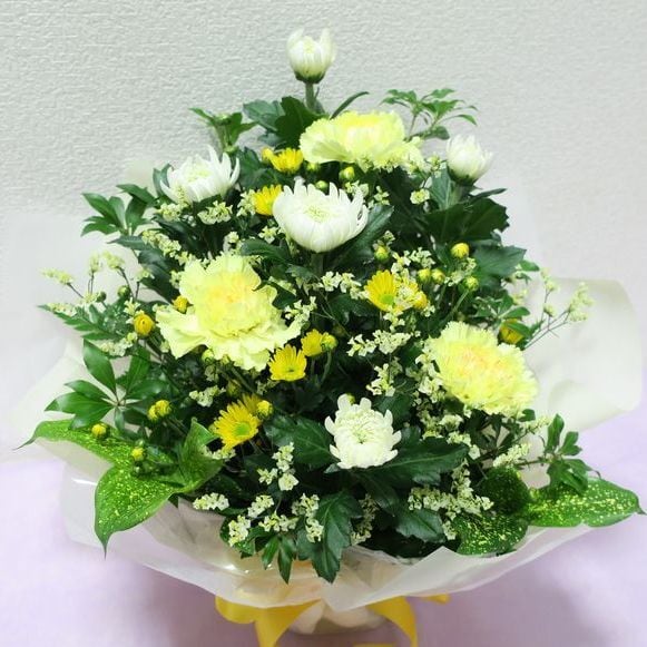 お供え・お悔やみのアレンジメントです。 法要やご命日などにおすすめです。 ▼▼ その他「お供え」商品はこちら ▼▼ https://fhanasyou.shopselect.net/categories/2259122 お花は暑いのが苦手です。 夏季(6月~10月)の配送方法は、「クール便」がオススメです。 【形体】アレンジメント 【目安のサイズ】高さ約40cm前後×幅約40cm前後×奥行き約25cm前後 【送料】1,100円~(高槻市内の配達は無料) ★☆★ご注意ください★☆★ ・【銀行振込】【コンビニ支払い】での決済をご希望される方は、ご入金確認後の発送となります。 ・「高槻市内」へのお届けの方は、【配送方法の選択】で「自社配達」をお選びください。 ・商品の性質上、お届けに2日以上を要する地域にはお届けできません。 【お届けができない地域】 北海道・青森県・秋田県・伊豆諸島・小笠原諸島・沖縄県・長崎県(北松浦郡小値賀町、五島市、西海市崎戸町平島・江島、佐世保市宇久町、対馬市、長崎市伊王島町・高島町、平戸市大島村、南松浦郡)鹿児島県(奄美市、出水郡長島町獅子島、大島郡、鹿児島郡、熊毛郡、薩摩川内市里町・上甑町・下甑町・鹿島町、西之表市)