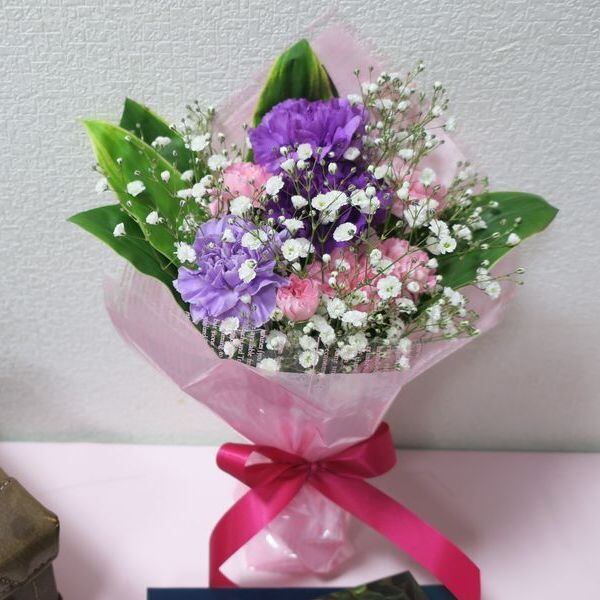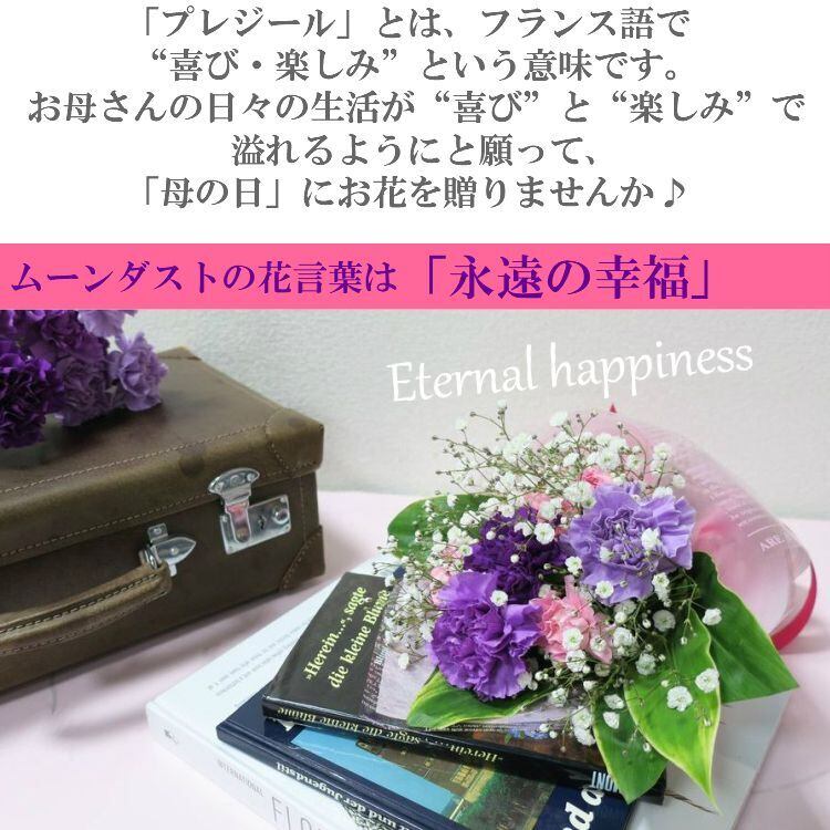 母の日限定花束です。花言葉「永遠の幸福」