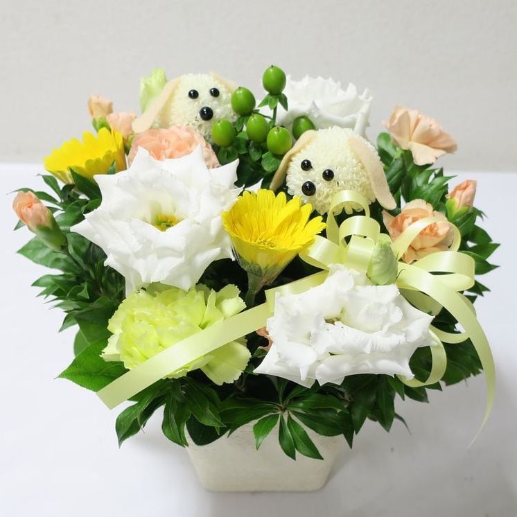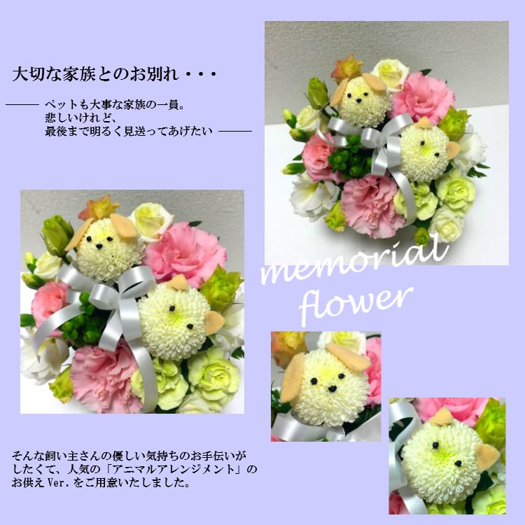 お供えアレンジメント 【アニマルアレンジメント(お供えVer.)】 お花はスタッフおまかせ! 御供 法事 法要 命日 お彼岸 お盆 初盆 新盆 旧盆 ペットのお供え
